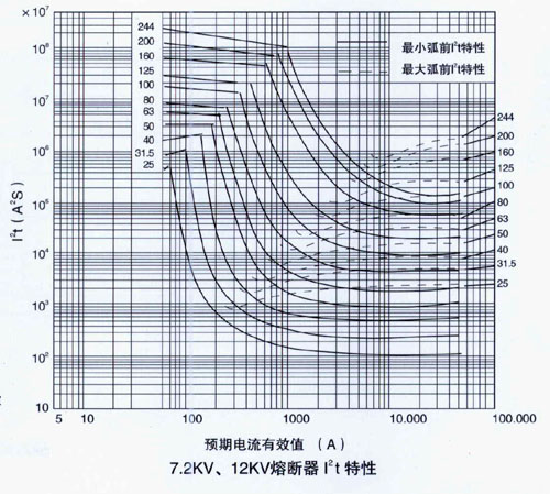 *時(shí)間——電流特性,最小開(kāi)斷電流以上部分用虛線表示。(如圖)